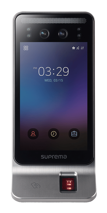 Terminal de reconocimiento facial, huella digital y lector de proximidad.